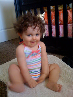 We leave for Florida, Daytona Beach to be exact in a week and a half! First time for Stella to ride an airplane, first time traveling with a baby and not to mention overseeing 5o college students in a party town! Wish us luck! As you can see Stella can't wait to wear her new swim suit!